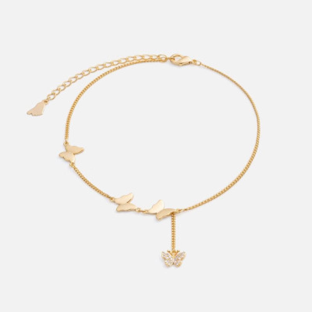 خلخال نسائي أنيق يتناسب مع إطلالتك اليومية الأنيقة, يأتي باللون الذهبي و بتصميم على شكل حلية متدلية بشكل فراشة مرصعة بفصوص الزركون البراقة التي تضفي لمسة من الجاذبية على الخلخال, كما انه يمكنك اختياره كهدية مميزة لأحبابك.