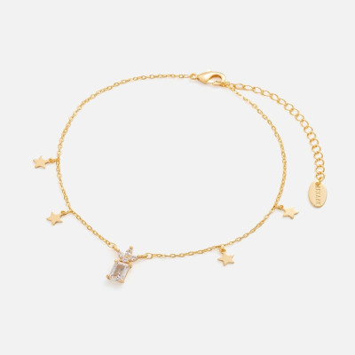 مجموعة اكسسوارات نسائية باللون الذهبي, مكونة من 10 قطع مختلفة مكونة من 3 سلاسل بتصميم أنيق و مرصعة بأحجار و فصوص الزركون البراق, و خاتمين باللون الذهبي مزينة بفصوص الزركون, و 3 أساور أنيقة مناسبة للإرتداء اليومي, و خلخالين بتصميم ملفت مناسب لكل الأوقات.