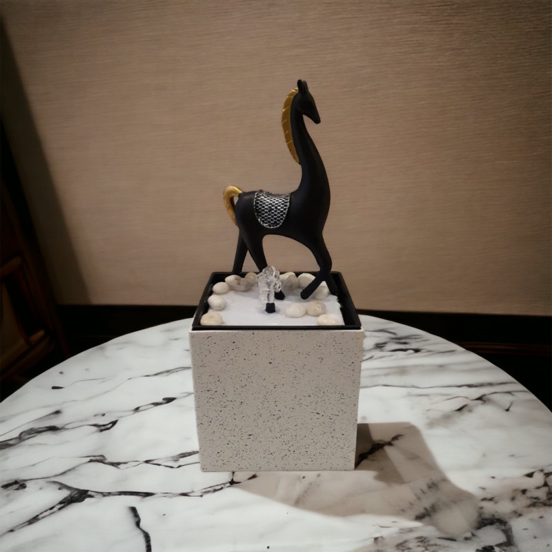 نافوره علي هيئه غزال اللاما وهي من غزلان التي تمثل حضاره شعوب وقبائل التبت تم تصميمها لتكون القطعه الأبرز في قطع الديكور في منزلك. فهي مصنوعة من أرقي المواد العالميه الفاخرة لتضيف لمسه ساحرة علي الأجواء في منزلك و تنقلك بجمالها الي عالم الطبيعة والسكون النفسي.