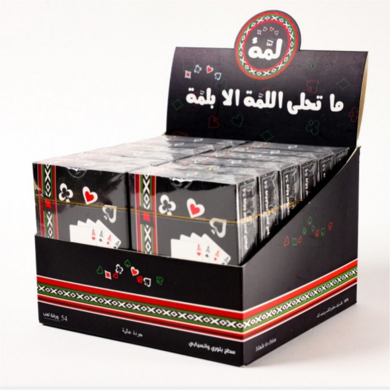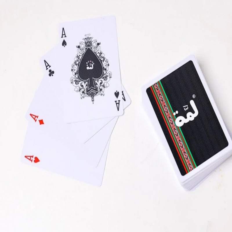 درزن ورق بلوت لمّة 12 حبة بعدد 54 ورقة لعب. مقاومة للكسر و مقاومة للقطع و حجم البوكر (السماكة 0.32mm العرض 63mm الطول 88mm), تتميز الأوراق بأنها ناعمة وانسيابية و ذات جودة عالية وتصميم مميز.