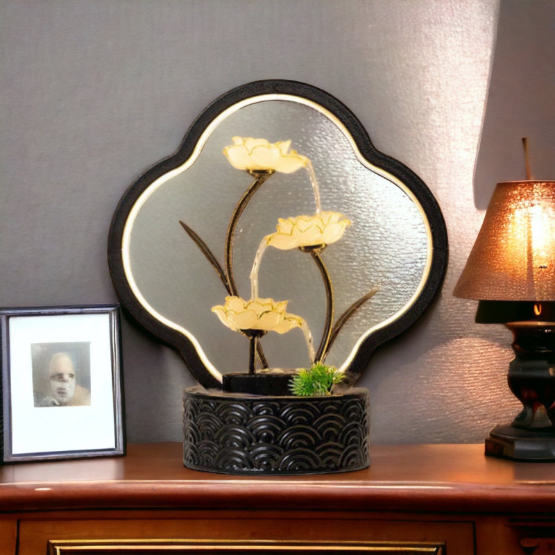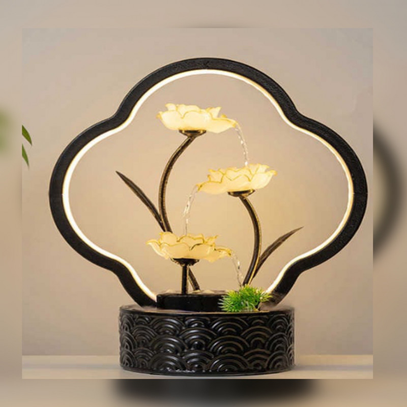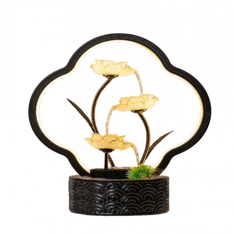 نافورة مودرن. مصممة بطريقة رائعة مستوحاة من زهرة اللوتس المثالية و مزودة بأضواء مخفية لتزيد من جاذبيتها مضيفة تأثيرا رائعا و لامعا و نقيا على مساحة غرفة معيشتك.