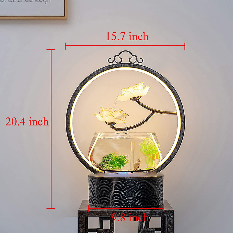 نافورة ذات تأثير لامعا ولا نقيا على مساحة معيشتك. فهي مصممة بطريقة رائعة و مستوحاه من زهرة اللوتس المثالية و مزودة بأضواء مخفية لتزيد من جاذبيتها و استمتاعك بأجوائك الخاصة لتنقلك بجمالها إلى عالم الطبيعة والسكون النفسي.