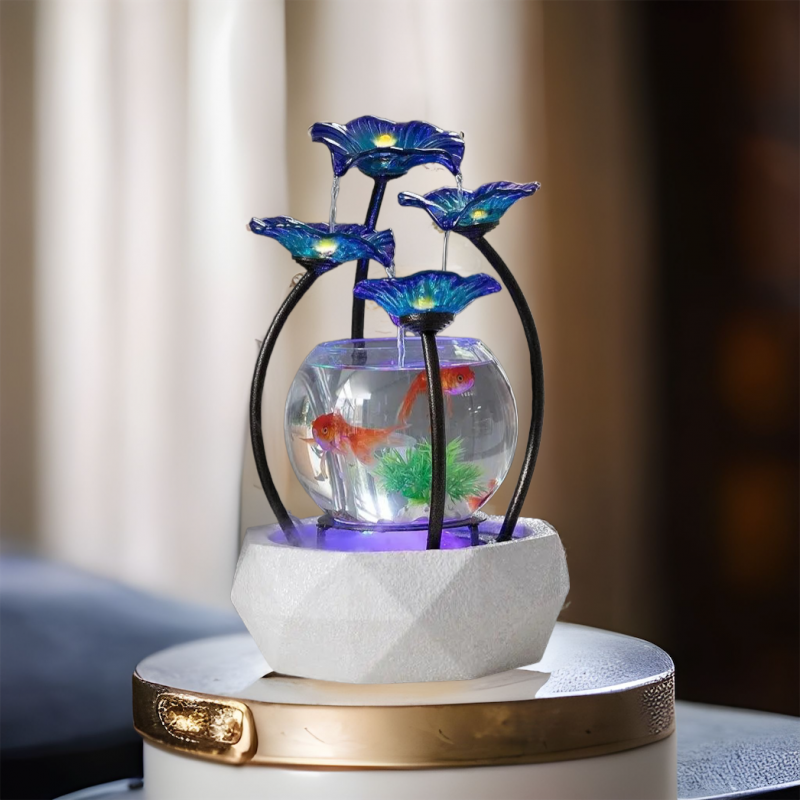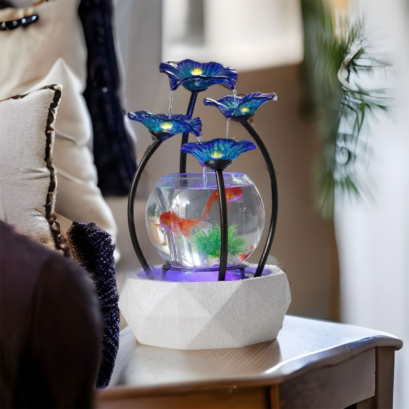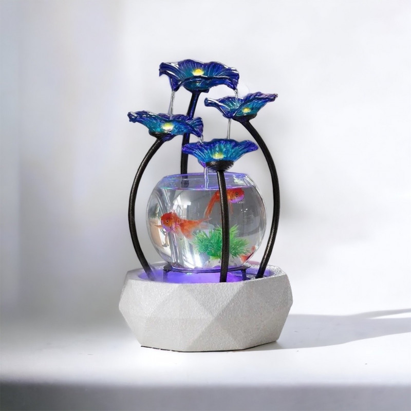 - تتدفق المياه إلى أسفل حوض السمك للحصول على تأثير مهدئ