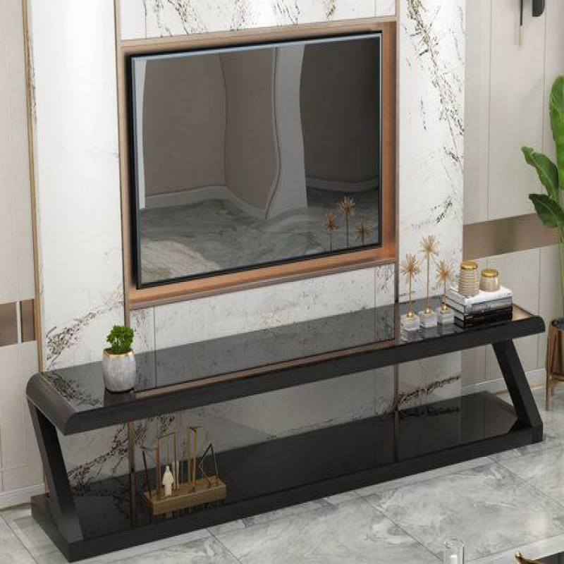 137.93 $طاولة تلفاز و بلازما حديثة الشكل مصنعة من الحديد الثقيل و سطح من مادة لامعة مقاومة للكسر.